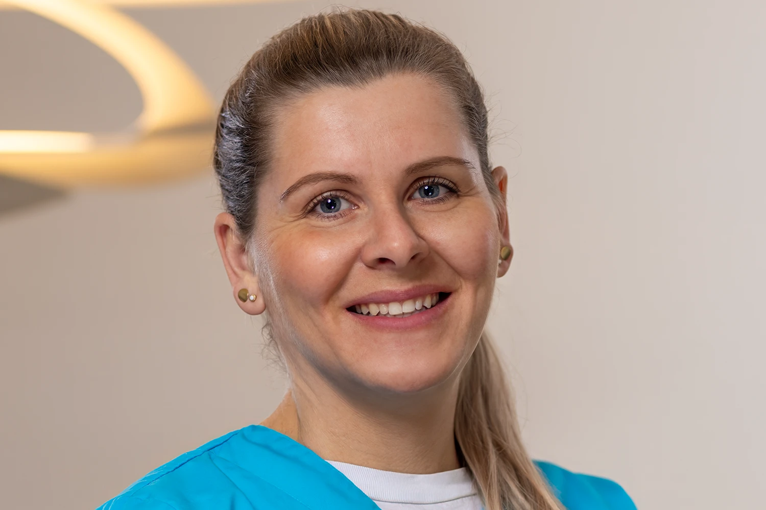 gerade in Weiterbildung zur Dentalhygienikerin, Leitung unserer Prophylaxe-Abteilung