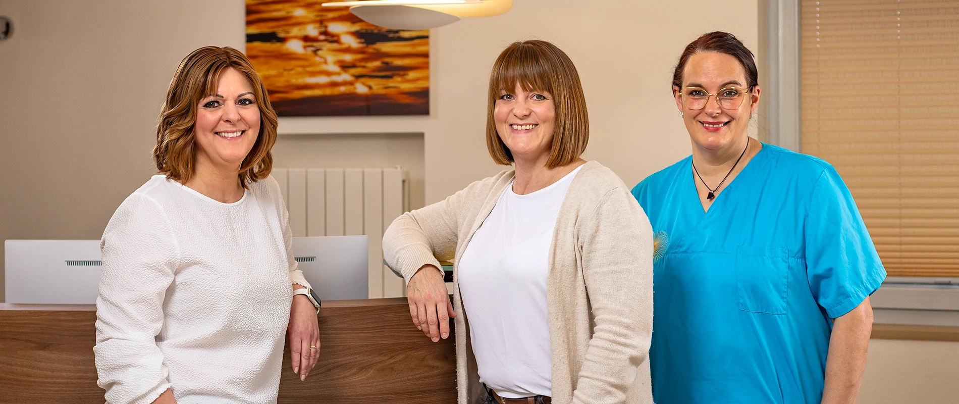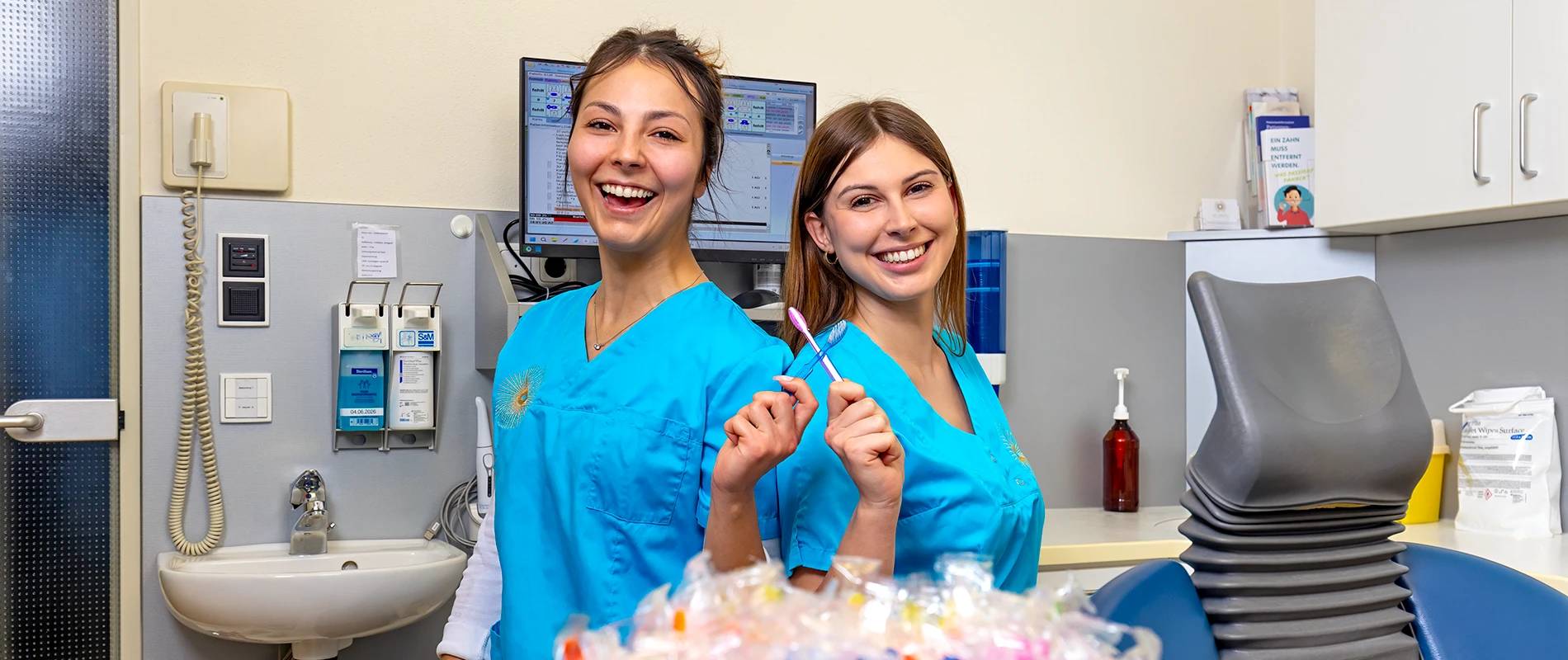 Gute Behandlungserfolge lassen sich nur im Team erzielen – deshalb sind alle unsere Mitarbeiterinnen perfekt aufeinander eingespielt und arbeiten teilweise schon seit vielen Jahren erfolgreich zusammen. Erfahrene, fortgebildete Mitarbeiterinnen betreuen Sie bei der Assistenz, der Durchführung der Prophylaxe sowie der professionellen Zahnreinigung und stehen für Ihre Fragen rund um die Abrechnung zur Verfügung. Für Ihre Wünsche und Fragen haben unsere Mitarbeiterinnen immer ein offenes Ohr.